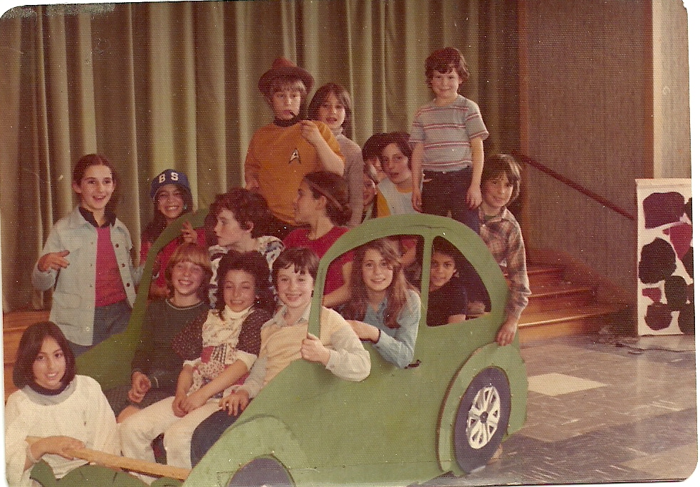 For the most effective production, use the whole room, not just the stage. The script assumes a relatively flexible auditorium/gym space. A few scenes that require props (such as classroom and library) take place on stage, but much of the action takes place in front of the stage around "the little green VW" (the Sharon class used cardboard sides cut to shape and painted). Sometimes, as indicated in the script, characters should enter from behind the audience, using the center aisle.